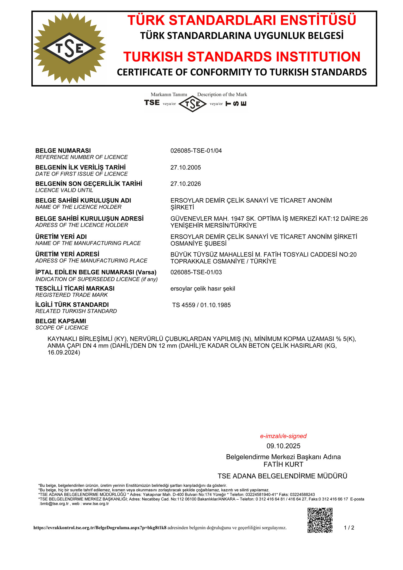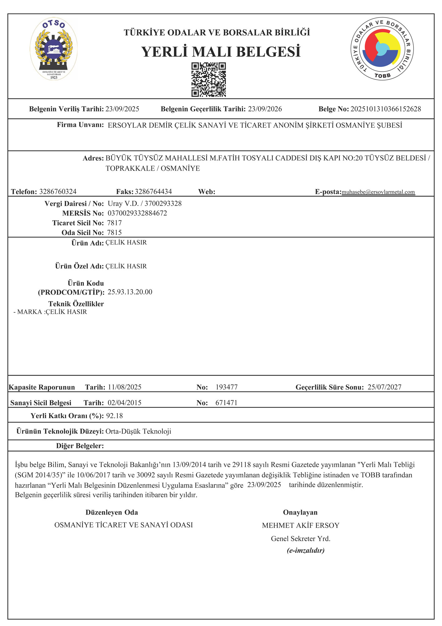 Ticaret Sanayi Odası Yerli Malı Belgesi